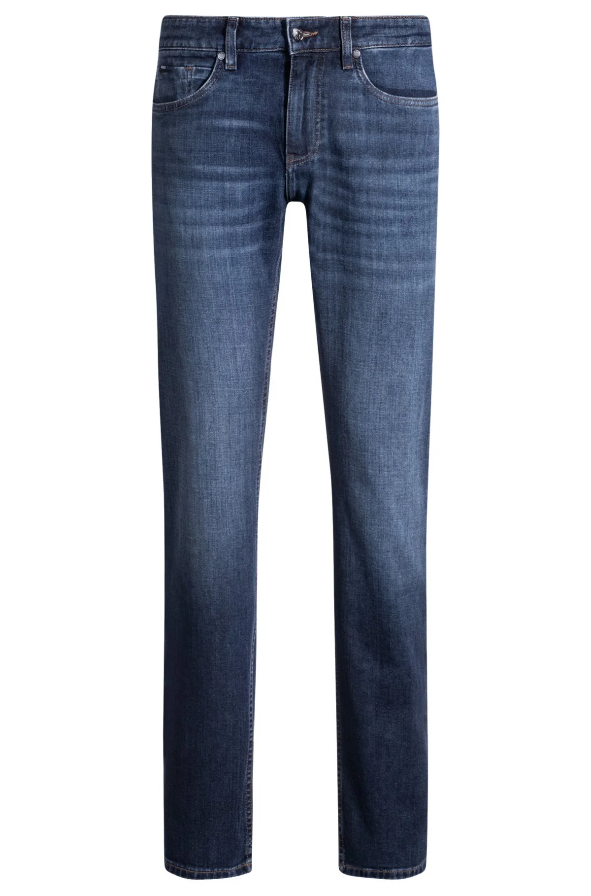 SIZE AND FIT The model wears a size 32/32 and is 6'2" tall with a, 0" chest, 30" waist and 35" hips. DETAILS H-Delaware - 50537390 With a slim fit and versatile blue tone, these BOSS Menswear jeans are an all-time classic. Crafted in soft, stretch denim for shape recovery. Slim fit Regular rise Button and zip closure Pockets bottom front: Side pockets Slim leg Pockets bottom back: Patch pocket Standard length Fit foot width: 35,4 cm (13.9 inches) QUALITY & CARE INSTRUCTIONS Machine Wash Cold Gentle Quality: 92% Cotton, 6% Elastomultiester, 2% Elastane Iron Medium Heat Do Not Bleach Do Not Tumble Dry Do Not Dry Clean