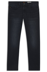 SIZE AND FIT The model wears a size 32/32 and is 6'2" tall with a, 37" chest, 30" waist and 37" hips. DETAILS Combining an authentic denim look with soft-touch comfort, these slim BOSS Menswear jeans are a modern foundation. Blue-black tone with slub yarn. Slim fit Regular rise Button and zip closure Pockets bottom front: Side pockets Slim leg Pockets bottom back: Patch pocket Standard length Fit foot width: 36,0 cm (14.2 inches) DELAWARE BO - 50549503 QUALITY & CARE INSTRUCTIONS Iron Medium Heat Material: 82% Cotton, 16% Polyester, 2% Elastane Do Not Dry Clean Do Not Tumble Dry Do Not Bleach Machine Wash Cold Gentle