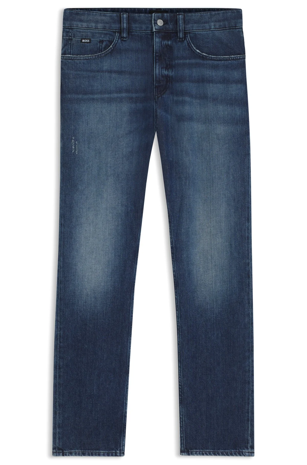 DETAILS Trimmed with a subtle Double B monogram, these blue BOSS Menswear jeans are engineered in cotton denim with mechanical stretch for comfort. Slim fit. Slim fit Regular rise Button and zip closure Pockets bottom front: Side pockets Slim leg Pockets bottom back: Patch pocket Standard length Fit foot width: 35,4 cm (13.9 inches) C-Delaware - 50549824 QUALITY & CARE INSTRUCTIONS Do Not Dry Clean Do Not Tumble Dry Do Not Bleach Material: 100% Cotton Machine Wash Cold Gentle Iron Medium Heat
