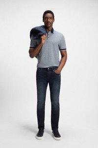 SIZE AND FIT The model wears a size 32/32 and is 6'1" tall with a, 36" chest, 29" waist and 37" hips. DETAILS P-Delaware - 50544927 These effortless BOSS Menswear jeans will go with everything. Made from super-soft denim in cotton-modal with stretch for comfort. Modern slim fit. Slim fit Regular rise Button and zip closure Pockets bottom front: Side pockets Slim leg Pockets bottom back: Patch pocket Standard length Fit foot width: 35,4 cm (13.9 inches) QUALITY & CARE INSTRUCTIONS Quality: 57% Cotton, 37% Modal, 4% Elastomultiester, 2% Elastane Iron Medium Heat Machine Wash Cold Gentle Do Not Dry Clean Do Not Tumble Dry Do Not Bleach