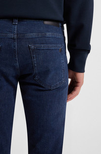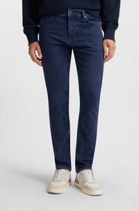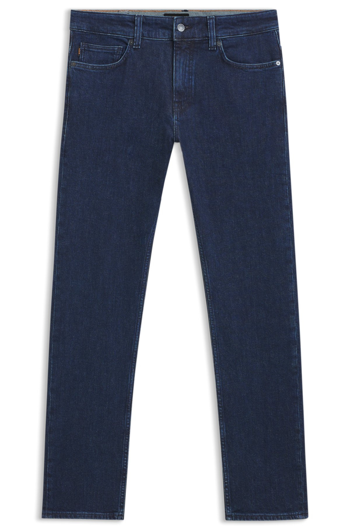 SIZE AND FIT The model wears a size 32/32 and is 6'1" tall with a, 35" chest, 28" waist and 34" hips. DETAILS DELAWARE BO - 50532515 Freshly styled jeans by BOSS Menswear, delivered in indigo blue with subtle washed effects. This slim-fitting pair is crafted in comfort-stretch denim. Slim fit Regular rise Button and zip closure Pockets bottom front: Side pockets Slim leg Pockets bottom back: Patch pocket Standard length Fit foot width: 36,0 cm (14.2 inches) QUALITY & CARE INSTRUCTIONS Iron Medium Heat Do Not Tumble Dry Do Not Bleach Quality: 99% Cotton, 1% Elastane Machine Wash Cold Gentle Do Not Dry Clean