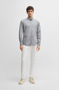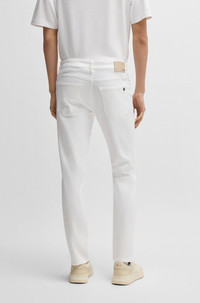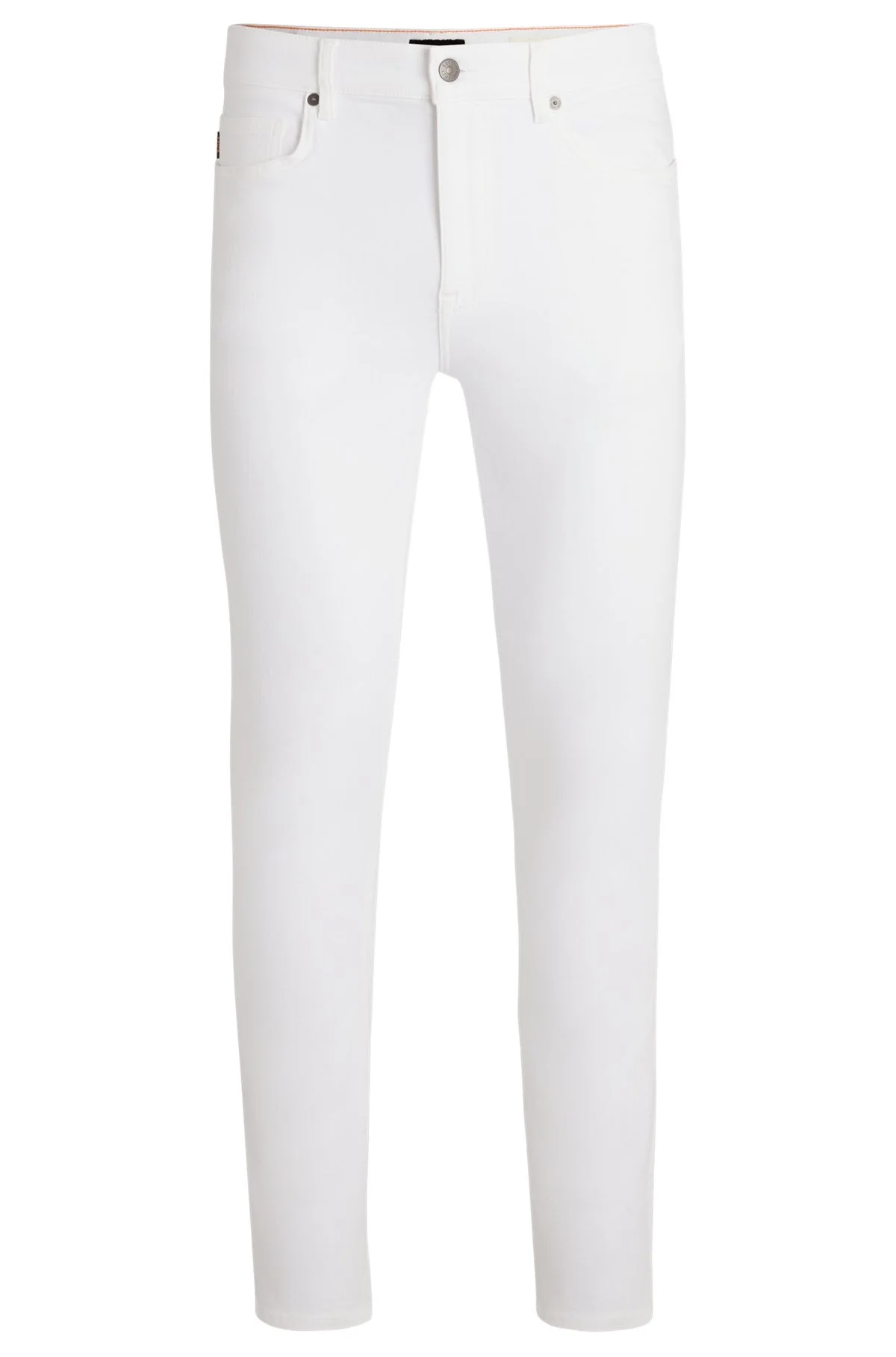 SIZE AND FIT The model wears a size 33/32 and is 6'2" tall with a, 37" chest, 30" waist and 37" hips. DETAILS DELAWARE BO - 50537832 Cut with a slim leg, these BOSS Menswear jeans offer easy movement for everyday appeal. Compact denim with slub yarn for added character. Slim fit Regular rise Button and zip closure Pockets bottom front: Side pockets Slim leg Pockets bottom back: Patch pocket Standard length Fit foot width: 36,0 cm (14.2 inches) QUALITY & CARE INSTRUCTIONS Do Not Dry Clean Do Not Bleach Machine Wash Cold Gentle Iron Medium Heat Do Not Tumble Dry Quality: 93% Cotton, 5% Polyester, 2% Elastane