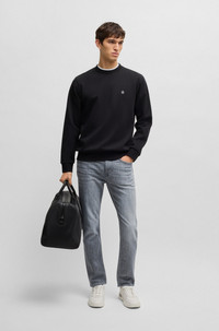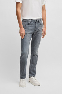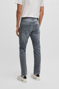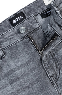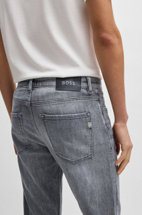 SIZE AND FIT The model wears a size 32/32 and is 6'2" tall with a, 37" chest, 30" waist and 37" hips. DETAILS H-Delaware - 50541924 With a modern black tint, these slim-fitting BOSS Menswear jeans are a great casual foundation. Engineered with mechanical stretch for lasting shape recovery. Slim fit Regular rise Button and zip closure Pockets bottom front: Side pockets Slim leg Pockets bottom back: Patch pocket Standard length Fit foot width: 35,4 cm (13.9 inches) QUALITY & CARE INSTRUCTIONS Do Not Dry Clean Do Not Bleach Machine Wash Cold Gentle Iron Medium Heat Quality: 100% Cotton Do Not Tumble Dry