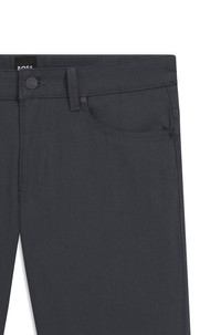 SIZE AND FIT The model wears a size 33/32 and is 6'1" tall with a, 36" chest, 29" waist and 37" hips. DETAILS H-Delaware5 - 50543952 Choose these BOSS Menswear trousers as a building block for everyday looks. Cut to a slim fit in stretch cotton with a Panama weave. Slim fit Regular rise Button and zip closure Slim leg Pockets bottom front: Side pockets Pockets bottom back: Patch pocket QUALITY & CARE INSTRUCTIONS Iron Low Heat Reduced Dry Clean Quality: 97% Cotton, 3% Elastane, pocketing: 65% Polyester, 35% Cotton Do Not Bleach Do Not Tumble Dry Machine Wash Cold Gentle