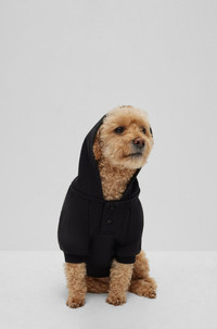 DETAILS Dog Khaby Hoodie - B2FDAH999 A cotton dog hoodie by BOSS with a double-layered hood, fleece lining and artwork inspired by the capsule collection with creator Khaby Lame. Measurements: XS fits dogs 23-27cm long, chest 33-37cm, neck 26-29cm (Chihuahua) S fits dogs 28-32cm long, chest 38-42cm, neck 31-34cm (small Terrier) M fits dogs 36-40cm long, chest 48-52cm, neck 36-39cm (Pug) L fits dogs 44-48cm long, chest 59-63cm, neck 47-50cm (Spaniel) XL fits dogs 51-55cm long, chest 69-73cm, neck 55-58cm (Border Collie) XXL fits dogs 59-63cm long, chest 84-88cm, neck 63-66cm (Labrador) QUALITY & CARE INSTRUCTIONS Iron Low Heat Machine Wash Cold Quality: 100% Cotton Do Not Bleach Do Not Tumble Dry Wash Do Not Dry Clean