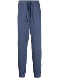 drawstring-waist cotton track pants Highlights - Navy blue - Stretch-cotton - Jersey texture - Elasticated drawstring waistband - Slim cut - Two side slit pockets Imported Composition Cotton 95%, Elastane 5% SIZE & FIT Model measurements Height 6 ft 2 in(1.87 m) Bust/Chest 31.49 in(80 cm) Hips 37.79 in(96 cm) Waist 27.95 in(71 cm) FittingInformation Designed for a relaxed tapered leg, allowing a comfortable loose fit above the knee with a closer fit towards the calves Adjust this piece’s waistband to your preference using the drawstring Made from a midweight stretch fabric, this piece offers elasticity and flexibility when worn This piece fits true to size – take your usual size Washing instructions Machine Wash