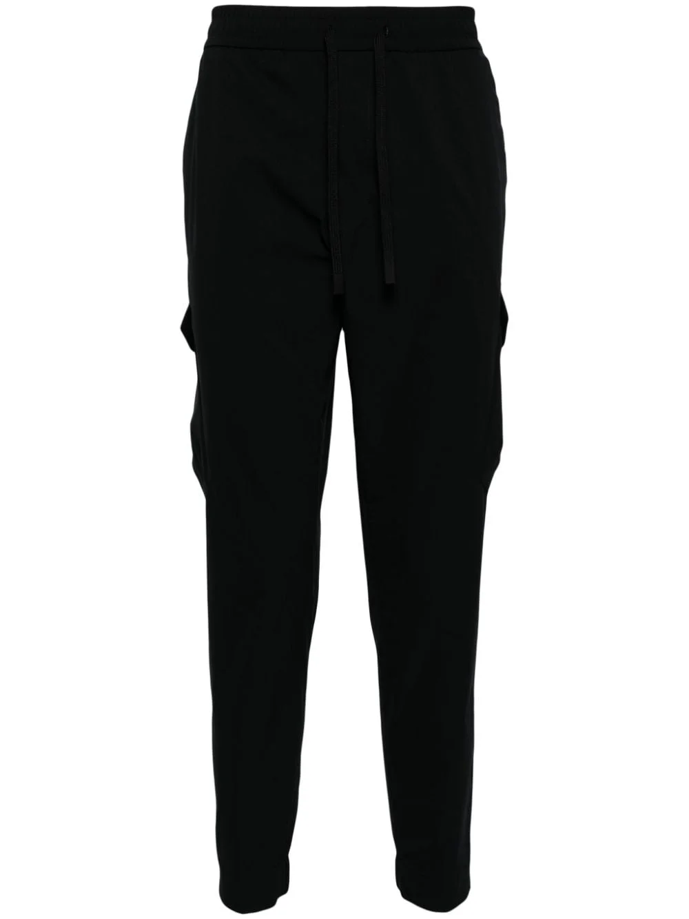 elasticated-waist track pants Highlights - Black - Logo print to the side - Elasticated drawstring waistband - Two side slit pockets - Two side cargo pockets - Rear welt pocket - Elasticated ankles Imported Composition Elastomultiester 100% SIZE & FIT Model measurements Height 6 ft 2 in(1.87 m) Bust/Chest 34.25 in(87 cm) Hips 36.22 in(92 cm) Waist 29.52 in(75 cm) FittingInformation Designed for a slim tapered leg, offering a close fit that sits just away from the leg with a closer fit towards the ankle Made from a midweight stretch fabric, this piece offers elasticity and flexibility when worn This piece fits true to size – take your usual size