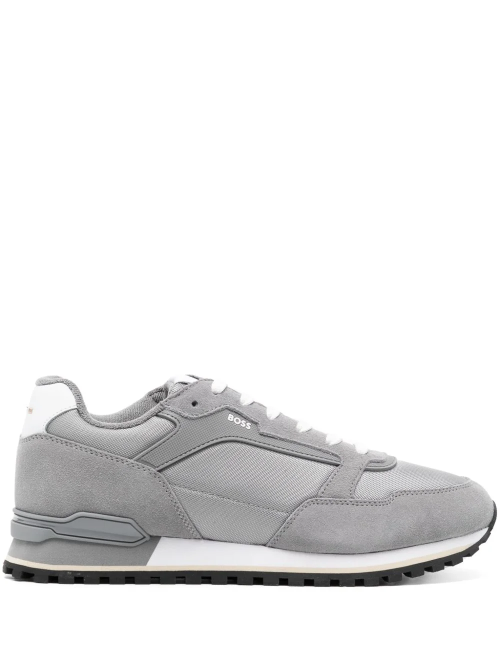 embossed-logo sneakers Highlights - Grey - Mesh panelling - Leather trim - Embossed logo to the side - Logo patch at the tongue - Front lace-up fastening - Round toe - Rubber sole Imported Composition Lining: Fabric 100% Sole: Rubber 100% Outer: Fabric 40%, Other Materials 40%, Calf Leather 20% SIZE & FIT Measurement HEEL 1.57 in(4 cm) HEIGHT 3.34 in(8.5 cm) Sole height 0.78 in(2 cm)