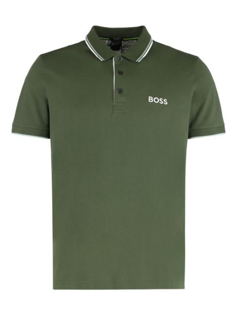embroidered-detail polo shirt Highlights - Pink - Short sleeves - Embroidered logo - Two-button placket - Straight hem Imported Composition Cotton 56%, Recycled Polyester 39%, Elastane 5% Washing instructions Machine Wash