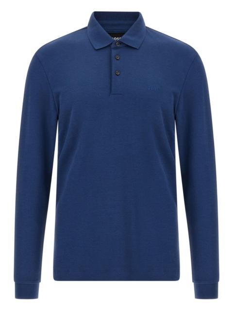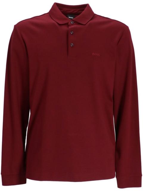 embroidered-logo polo shirt Highlights - Charcoal grey - Front button placket - Ribbed cuffs - Long sleeves - Mini logo tag Imported Composition Cotton 100% SIZE & FIT Model measurements Height 6 ft 2 in(1.87 m) Bust/Chest 33.07 in(84 cm) Hips 35.43 in(90 cm) Waist 26.77 in(68 cm) FittingInformation Designed for a regular fit, this polo shirt offers a comfortable loose fit throughout the body Made from a midweight non-stretch fabric, this piece offers minimal elasticity when worn