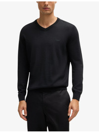 PRODUCT DETAILS - BOSS wool knitted jumper - 100% virgin wool - Pulls on - Regular fit, V-neck, long sleeves, embroidered logo, ribbed trims - Machine wash cold - Model is 6ft 1in/1.85m and wears a size medium - Lightweight, stretchy Ref: R03965211