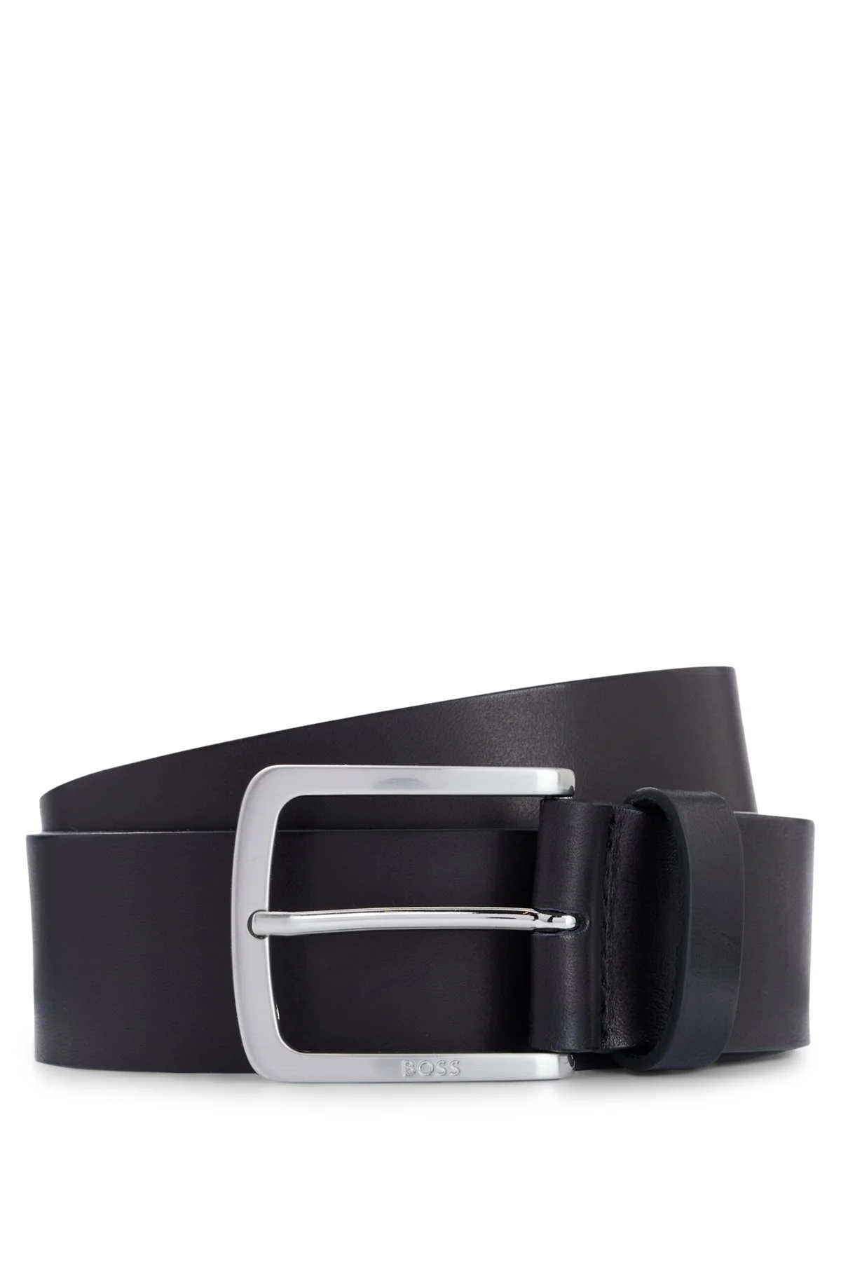 SIZE AND FIT The model wears a size 34 and is 6'1" tall with a, 37" chest, 29" waist and 35" hips. DETAILS Jor-V_Sz40 - 50471321 A 4cm belt crafted in vegetable-tanned Italian leather with a logo-engraved pin buckle by BOSS. For the best fit, we advise ordering a belt one size larger than your waist size. Engraved logo on closure Width: 4,0 cm (1.6 inches) Hardware finishing: Brushed silver hardware Partially lined QUALITY & CARE INSTRUCTIONS Quality: 100% Cow leather