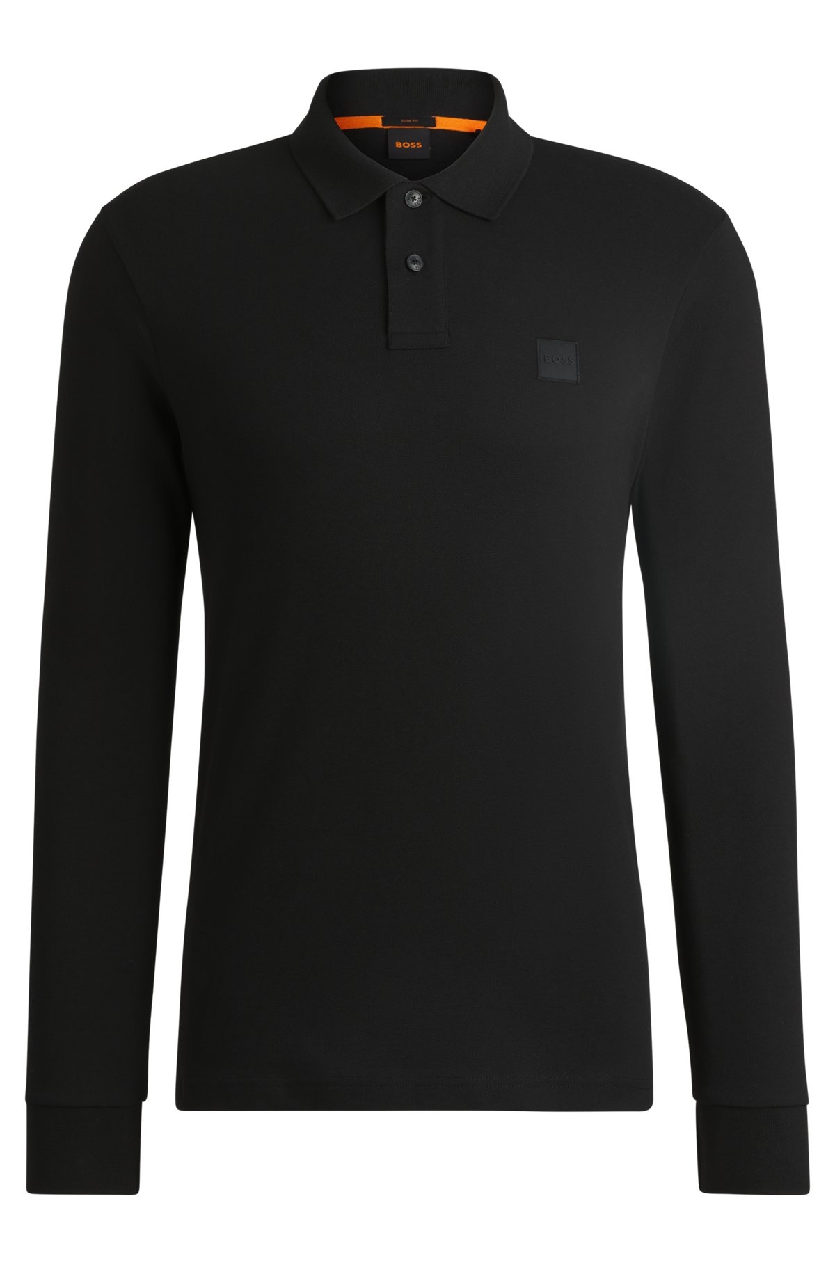 SIZE AND FIT The model wears a size M and is 6'0" tall with a, 31" chest, 26" waist and 35" hips. DETAILS Passerby - 50507704 A signature polo shirt with a tonal logo patch by BOSS. This slim-fitting top is crafted in washed stretch pique for comfort. Slim fit Neckline: Flat-knit collar Number of buttons: 2 Long sleeves Flat-knit cuffs QUALITY & CARE INSTRUCTIONS Machine Wash Cold Gentle Do Not Tumble Dry Quality: 95% Cotton, 5% Elastane Do Not Dry Clean Do Not Bleach Iron Low Heat