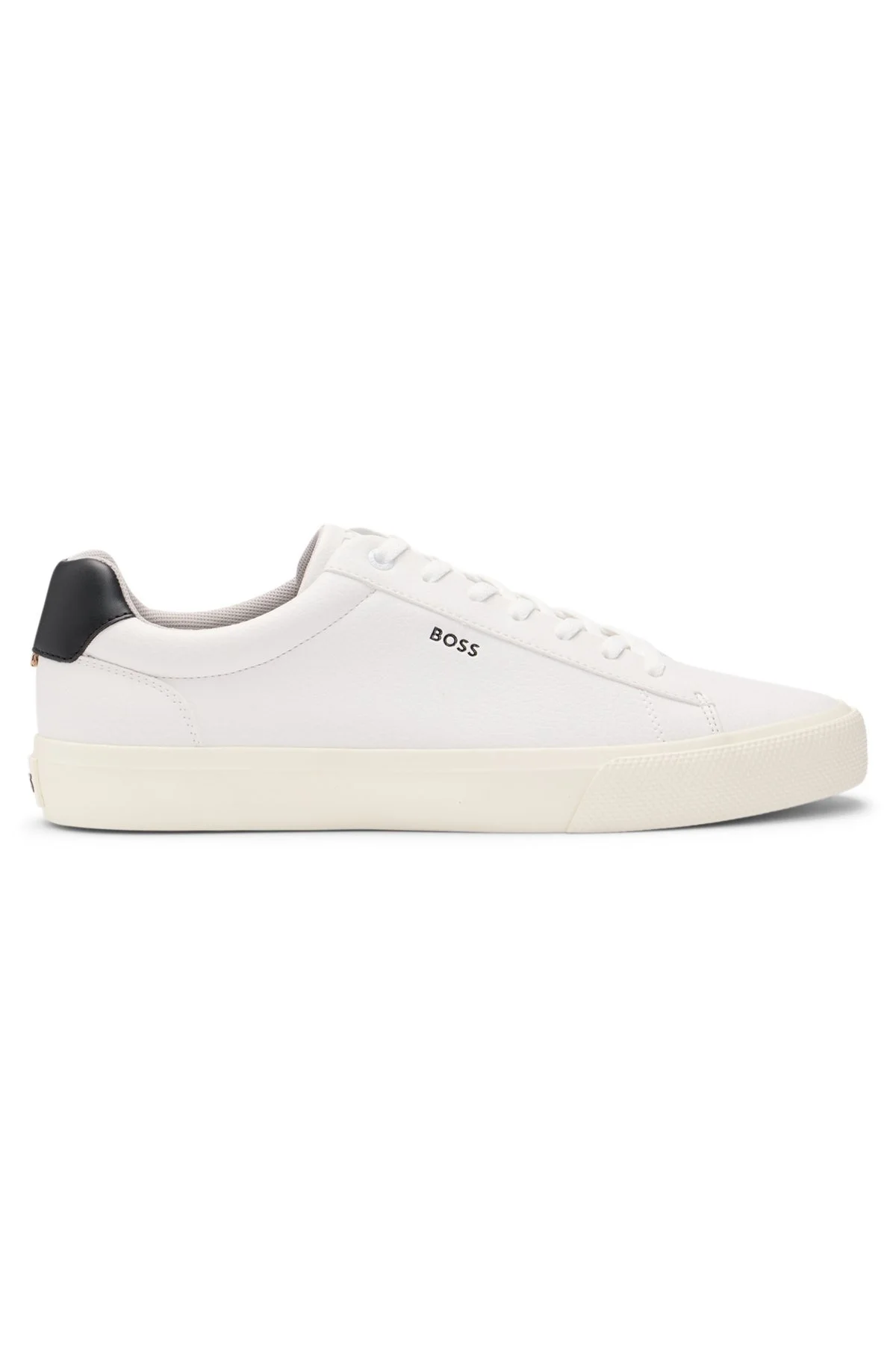 DETAILS Aiden_Tenn_grp - 50542114 With branding and a contrast trim adding interest, these BOSS Menswear trainers are ideal for any outfit. Synthetic coated fabric uppers with grained texture. Synthetic coated fabric, sometimes referred to as faux leather, is a fabric designed to resemble real leather, and/or display a matte, glossy, smooth, or textured, coated appearance. Laces Fully lined Packaging: Box QUALITY & CARE INSTRUCTIONS Upper material: 60% Polyurethane, 40% Polyester, Lining: 100% Polyester, 85% Polyester, 15% Polyurethane, Sole: 100% Rubber, Innersole: 100% Polyester