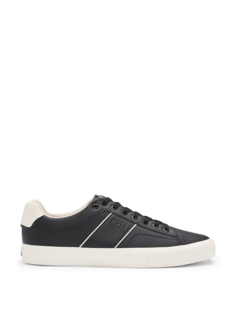 DETAILS Aiden_Tenn_grltp - 50522833 Sporty trainers with piping and debossed branding by BOSS. This pair is crafted in synthetic coated fabric with grained and plain finishes. Synthetic coated fabric, sometimes referred to as faux leather, is a fabric designed to resemble real leather, and/or display a matte, glossy, smooth, or textured, coated appearance. Laces Fully lined Packaging: Box QUALITY & CARE INSTRUCTIONS Upper material: 60% Polyurethane, 40% Polyester, Lining: 100% Polyester, 85% Polyester, 15% Polyurethane, Sole: 100% Rubber, Innersole: 100% Polyester