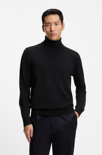 SIZE AND FIT The model wears a size M and is 5'10" tall with a, 29" chest, 24" waist and 35" hips. DETAILS Layer up in luxury with this rollneck BOSS Menswear sweater. Cut to a regular fit and knitted in cashmere for an extra-soft feel. Regular fit Neckline: Turtleneck Long sleeves Standard length H-Emio - 50546681 QUALITY & CARE INSTRUCTIONS Reduced Dry Clean Do Not Bleach Do Not Tumble Dry Cold, gentle machine wash; reduced spin speed. Iron Medium Heat Material: 100% Cashmere