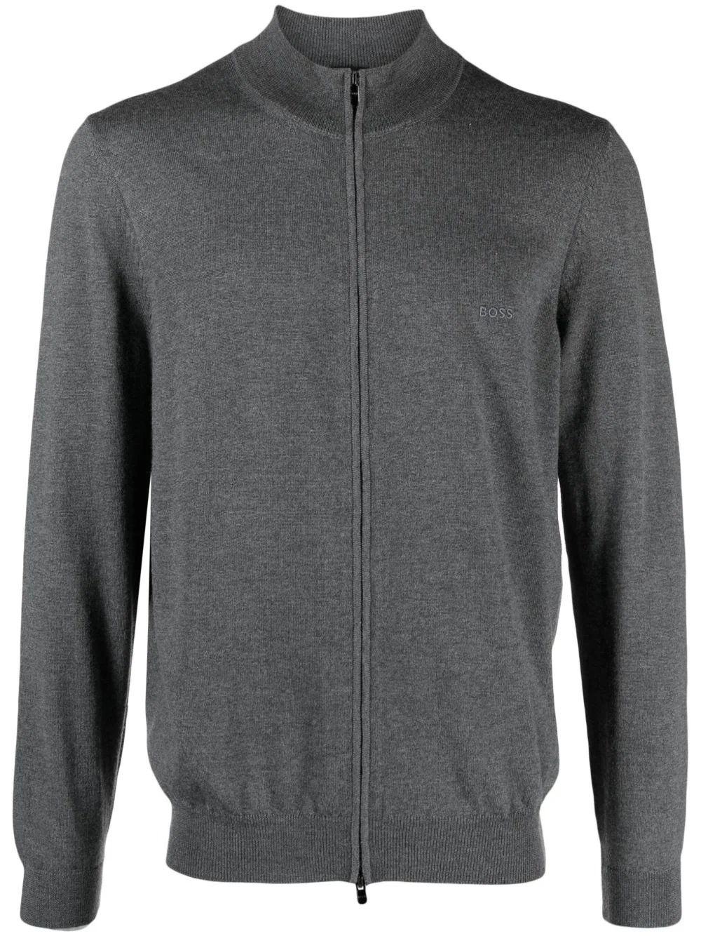 fine-knit zip-up cardigan Highlights - Light grey - Virgin wool - Knitted construction - Mock neck - Front zip fastening - Long sleeves - Straight hem Imported Composition Virgin Wool 100% SIZE & FIT Model measurements Height 6 ft 2 in(1.89 m) Bust/Chest 37.79 in(96 cm) Hips 37 in(94 cm) Waist 29.92 in(76 cm) FittingInformation Designed for a slim fit, offering a comfortable fit that sits just away from the body Made with a midweight knit, this piece offers some stretch This piece fits true to size – take your usual size