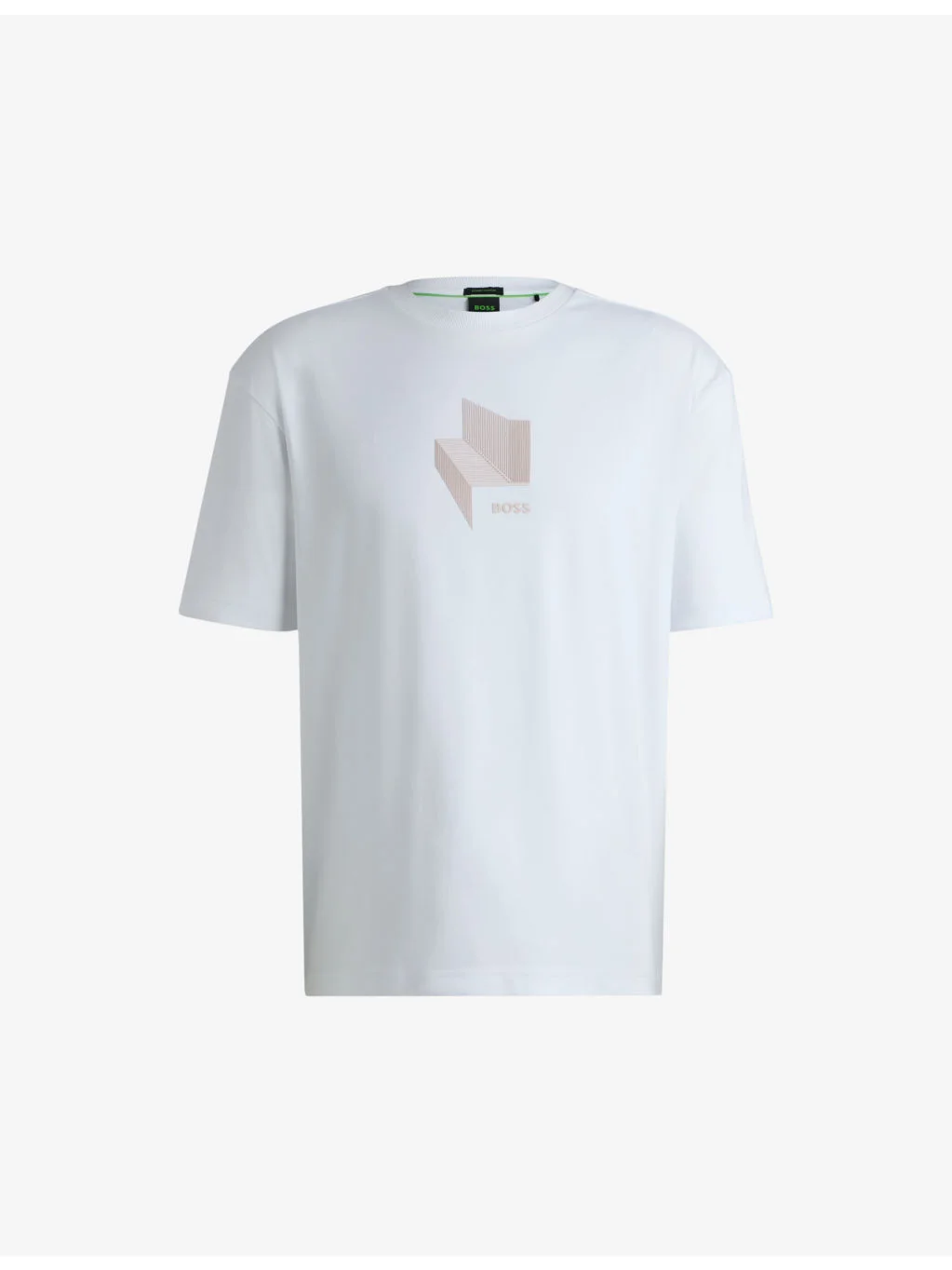 PRODUCT DETAILS - BOSS cotton-jersey T-shirt - 100% cotton - Pulls on - Regular fit, crewneck, ribbed trim at neck, short sleeves, print at front - Machine wash cold - Model is 6ft 2in/1.88m and wears a size medium - Lightweight, slight stretch Ref: R04285308