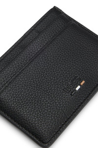 DETAILS Ray_S Card N. - 50536513 A refined card holder in synthetic coated fabric with a natural-looking grain by BOSS Menswear. Signature-stripe detail and embossed logo. Synthetic coated fabric, sometimes referred to as faux leather, is a fabric designed to resemble real leather, and/or display a matte, glossy, smooth, or textured, coated appearance. Measurements: 10 x 7cm Length: 10,0 cm (3.9 inches) Height: 7,0 cm (2.8 inches) 5 credit card slots Fully lined Exterior embossed logo Packaging: Box QUALITY & CARE INSTRUCTIONS Quality: 70% Polyurethane (62% recycled), 30% Polyester, Lining: 100% Polyester
