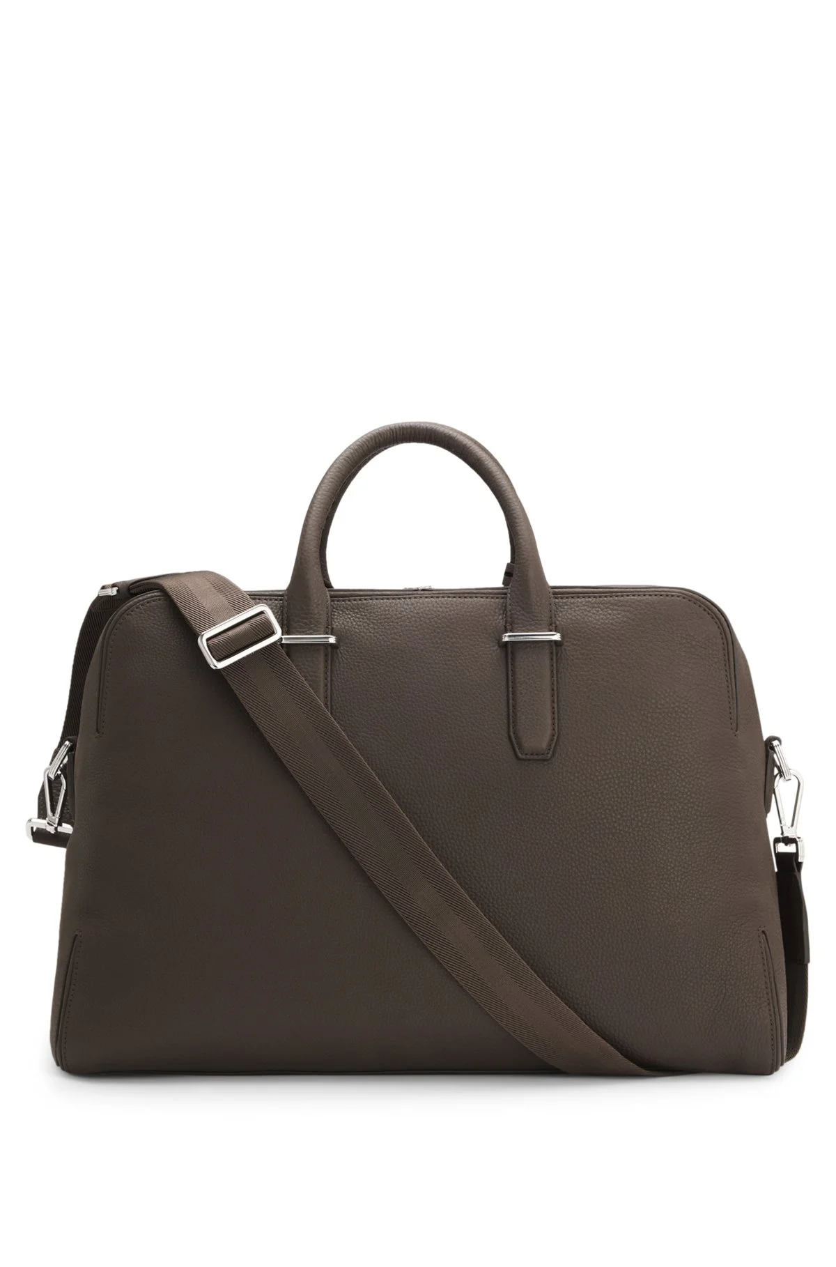 SIZE AND FIT The model wears a size pce. and is 6'1" tall with a, 32" chest, 28" waist and 34" hips. DETAILS Travel in style with the richly grained leather of this BOSS Menswear holdall. Padlock and detachable key holder. Embossed logo detail. Removable shoulder strap. Measurements: 45 x 31 x 21.5cm Length: 45,0 cm (17.7 inches) Width: 21,5 cm (8.5 inches) Height: 31,0 cm (12.2 inches) Fastening top: Two-way zip closure 1 inside zip pocket Hardware finishing: Polished silver hardware Exterior embossed logo Double handle Packaging: Dust bag Madison-B1_Holdall - 50548231 QUALITY & CARE INSTRUCTIONS Quality: 100% Cow leather, Lining: 100% Polyester, Facing: 100% Polyamide