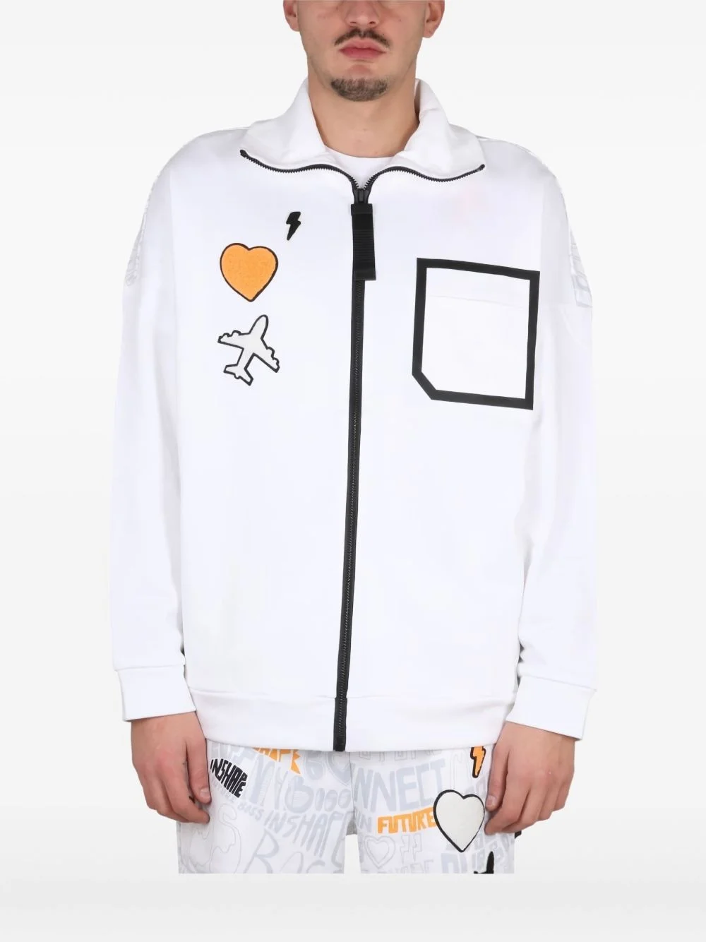 graphic-patch zip-up sweatshirt Highlights - White - Zip fastening - Graphic patches - Black-trim pocket - All-over print back panel - High neck Imported Composition Cotton 100% Washing instructions Read Manufacturer Guidelines