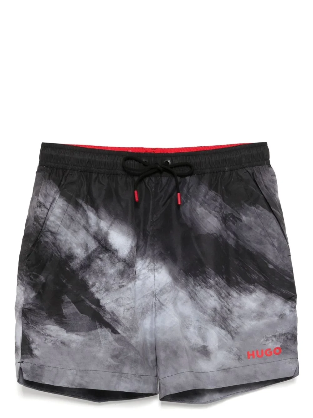 graphic print swim shorts Highlights - Black/grey/red - Lightweight construction - Elasticated drawstring waistband - Two side slash pockets - Rear welt pocket - All-over graphic print - Logo patch to the front - Short side slits - Thigh-length - Be mindful to try on swimwear over your own garments. Imported Composition Lining: Polyester 100% Outer: Polyester 100%