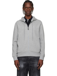 Stretch cotton jersey hoodie. · Drawstring at hood · Zip closure · Logo bonded at chest · Seam pockets · Rib-knit hem and cuffs Supplier color: Light grey 95% cotton, 5% elastane. Made in Pakistan 261085M202020