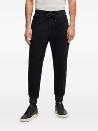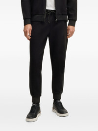 logo-engraved track pants Highlights - Black - Elasticated drawstring waistband - Two side slit pockets - Rear jetted pocket - Tapered leg Imported Composition Cotton 75%, Polyester 20%, Fabric 5%