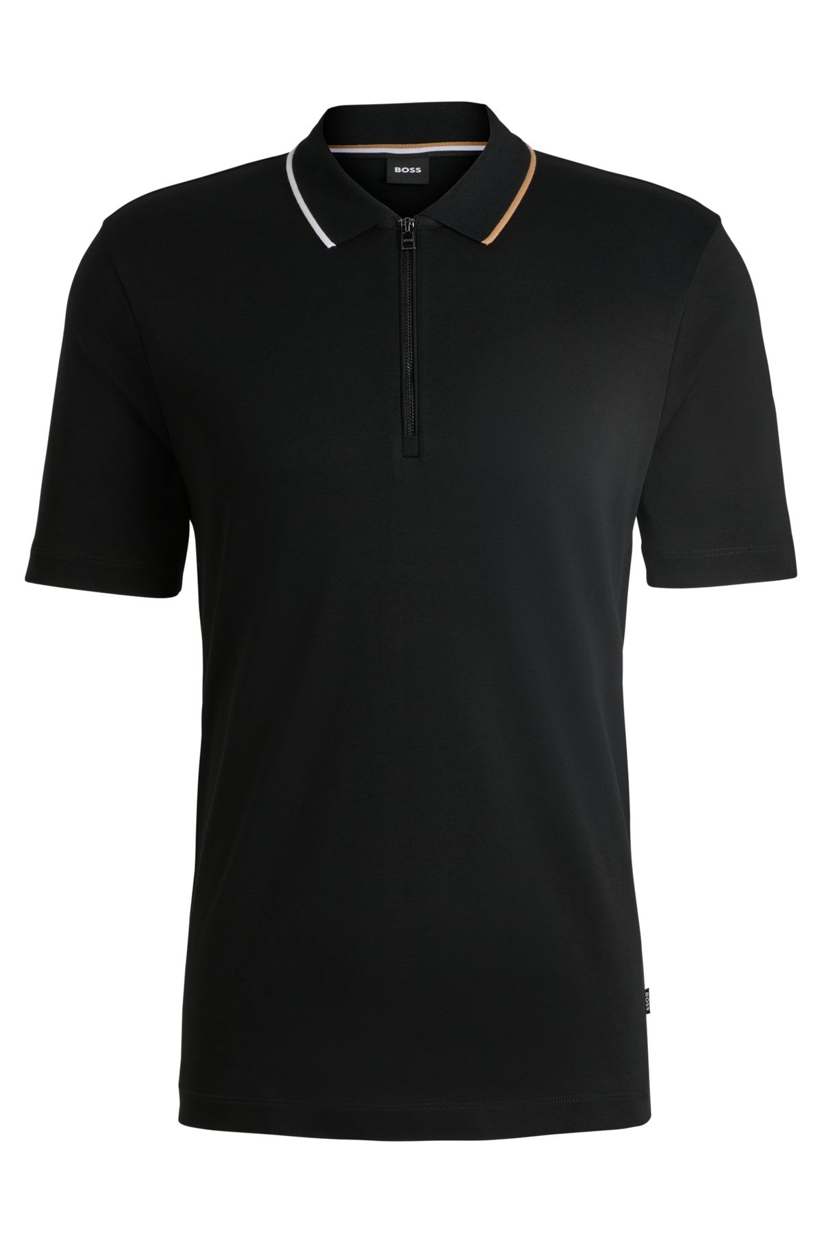 SIZE AND FIT The model wears a size M and is 6'2" tall with a, 37" chest, 33" waist and 35" hips. DETAILS C-Paras 30 - 50524334 A casual polo shirt by BOSS. Cut to a regular fit, this short-sleeved polo shirt is crafted in interlock cotton with a super-soft finish for elevated comfort. A zipped placket and collar tipping complete this piece. Regular fit Neckline: Zip neck Fastening top: Zip closure Short sleeves No cuffs QUALITY & CARE INSTRUCTIONS Quality: 100% Cotton Do Not Tumble Dry Do Not Bleach Machine Wash Cold Gentle Iron Low Heat Do Not Dry Clean