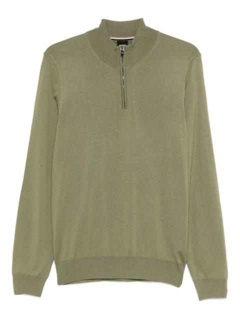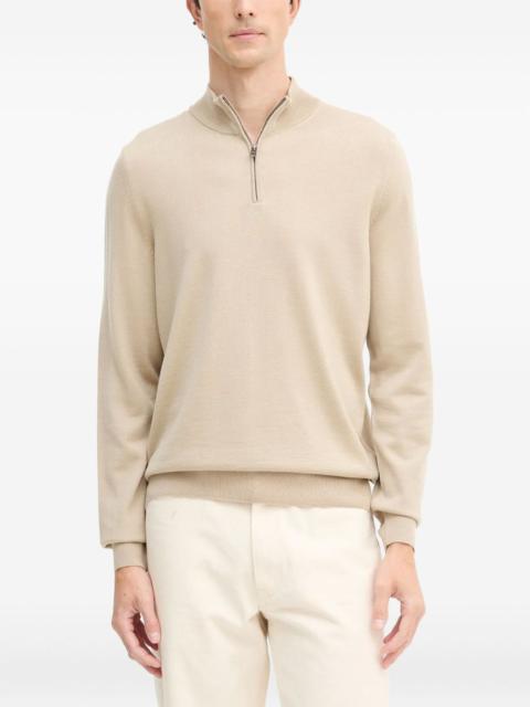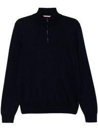 half-zip jumper Highlights - Navy blue - Half front zip fastening - Knitted construction - Long sleeves - Ribbed cuffs and hem Imported Composition Wool 100% SIZE & FIT Model measurements Height 6 ft 2 in(1.87 m) Bust/Chest 33.07 in(84 cm) Hips 35.43 in(90 cm) Waist 26.77 in(68 cm) FittingInformation Designed for a regular fit, offering a comfortable loose fit throughout the body The ribbed hem offers a close, comfortable fit Made with a midweight knit, this piece offers some stretch