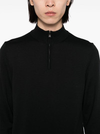 half-zip jumper Highlights - Black - Half front zip fastening - Knitted construction - Stretch-design - Ribbed cuffs and hem Imported Composition Virgin Wool 100% SIZE & FIT Model measurements Height 6 ft 2 in(1.87 m) Bust/Chest 33.07 in(84 cm) Hips 35.43 in(90 cm) Waist 26.77 in(68 cm) FittingInformation Designed for a regular fit, offering a comfortable loose fit throughout the body The ribbed hem offers a close, comfortable fit Made with a midweight knit, this piece offers some stretch