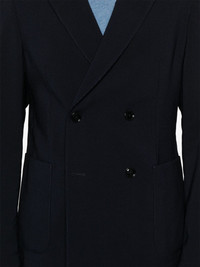 Hanry suit Highlights - Midnight blue - Double-breasted button fastening - Concealed front button, hook and zip fastening - Elasticated drawstring waistband - English rear vents Imported Composition Outer: Virgin Wool 91%, Polyamide 8%, Elastane 1% Lining: Cotton 100%, Viscose 65%, Polyester 35% SIZE & FIT Model measurements Height 6 ft 1 in(1.86 m) Bust/Chest 37.4 in(95 cm) Hips 36.22 in(92 cm) Waist 29.52 in(75 cm) FittingInformation Tailored for a slim fit, offering a comfortable fit that sits just away from the body The vented hem offers movement at the rear Made from a midweight stretch fabric, this piece offers elasticity and flexibility when worn