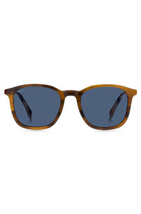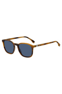 DETAILS BOSS 1433/S6C552KU - 58107990 Innovative sunglasses by BOSS, expertly crafted in Havana acetate detailed with branded temples, blue lenses and exclusively designed 360° hinges for total rotation. Front material: Acetate Temple material: Metal Lens: Full color Lens material: Polyester Size lens: 2.05 in (52 mm) (0 inches) Size bridge: 0.79 in (20 mm) (0 inch.) Temple Length: 5.7 in (145 mm) (0 inches)