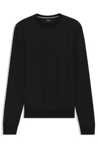 SIZE AND FIT The model wears a size M and is 6'1" tall with a, 36" chest, 29" waist and 37" hips. DETAILS A timeless classic, this BOSS Menswear sweater is detailed with a herringbone structure for easy elegance. Crafted in virgin wool blended with cotton. Regular fit Regular fit Neckline: Crew neck Long sleeves Standard length H-Habito - 50549985 QUALITY & CARE INSTRUCTIONS Do Not Bleach Material: 70% Virgin wool, 30% Cotton, Ribbing: 100% Virgin wool Cold, gentle machine wash; reduced spin speed. Do Not Tumble Dry Dry Clean Only Iron Medium Heat