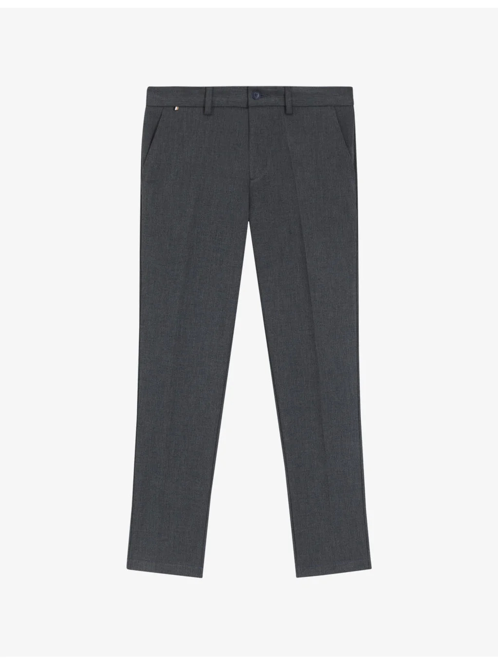 PRODUCT DETAILS - BOSS stretch-woven trousers - 62% polyester, 33% viscose, 5% elastane - Button and zip-fly fastening - Slim fit, mid rise, belt loops, slim leg, all-over brushed herringbone, pressed centre creases, two side pockets, two welt pockets at back, brand patch at back - Machine wash at 30°C - Model is 6ft 2in/1.88m and wears a size UK 32 - Midweight, slight stretch Ref: R04488816