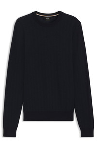 SIZE AND FIT The model wears a size M and is 6'1" tall with a, 36" chest, 29" waist and 37" hips. DETAILS A timeless classic, this BOSS Menswear sweater is detailed with a herringbone structure for easy elegance. Crafted in virgin wool blended with cotton. Regular fit Regular fit Neckline: Crew neck Long sleeves Standard length H-Habito - 50549985 QUALITY & CARE INSTRUCTIONS Dry Clean Only Do Not Tumble Dry Cold, gentle machine wash; reduced spin speed. Iron Medium Heat Quality: 70% Virgin wool, 30% Cotton, Ribbing: 100% Virgin wool Do Not Bleach