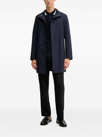 high-neck buttoned coat Highlights - Navy blue - High neck - Button fastening - Welt pockets - Long sleeves - Straight hem Imported Composition Outer: Polyester 47%, Wool 29%, Viscose 20%, Elastane 4% Lining: Polyester 95%, Elastane 5% Washing instructions Dry Clean Only