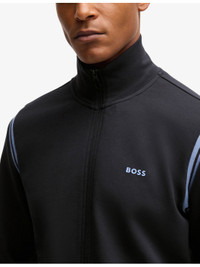 PRODUCT DETAILS - BOSS stretch-cotton sweatshirt - 95% cotton, 5% elastane - Zip fastening - Regular fit, high neck, long sleeves, logo print to chest, side pockets, contrast trim - Machine wash mild - True to size - Midweight, slight stretch Ref: R04330953