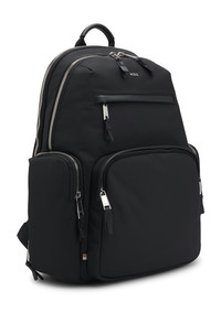 SIZE AND FIT The model wears a size pce. and is 6'1" tall with a, 36" chest, 29" waist and 34" hips. DETAILS Highway_N_Backpack N - 50536485 A contemporary backpack with signature trims by BOSS. This elegant accessory features leather facings for a refined touch. Length: 36,5 cm (14.4 inches) Width: 14,0 cm (5.5 inches) Height: 43,0 cm (16.9 inches) Fastening top: Two-way zip closure 1 inside zip pocket 1 inside open pocket Hardware finishing: Polished silver hardware Metal letters Top handle Packaging: Dust bag QUALITY & CARE INSTRUCTIONS Quality: 100% Polyester, Lining: 100% Polyester, Facing: 100% Polyester, 100% Polyamide, 100% Cow leather