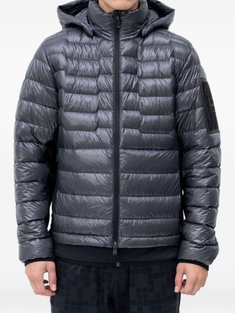 hooded quilted jacket Highlights - Black - Quilted design - Hooded neckline - Zip fastening - Sleeve pocket - Shiny shell Imported Composition Outer: Polyamide 100% Lining: Polyamide 100%, Goose Down 90%, Goose Feather 10% Washing instructions Read Manufacturer Guidelines