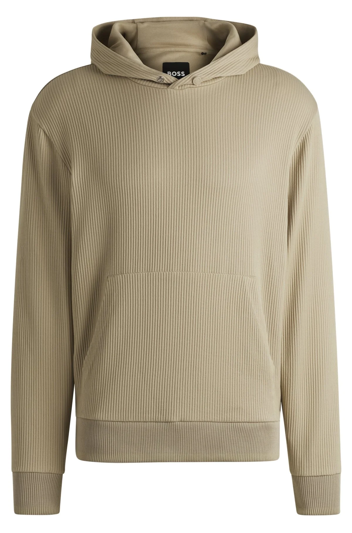 SIZE AND FIT The model wears a size M and is 6'2" tall with a, 37" chest, 31" waist and 37" hips. DETAILS P-Seeger 25 - 50537480 Crafted in a stretch-cotton blend with structured stripes, this BOSS Menswear hoodie makes layering easy. Straight fit with a sporty press-stud collar. Regular fit Neckline: Hooded Long sleeves Standard length QUALITY & CARE INSTRUCTIONS Do Not Bleach Cold, gentle machine wash; reduced spin speed. Quality: 31% Polyamid, 31% Modal, 31% Cotton, 7% Elastane Do Not Dry Clean Iron Low Heat Do Not Tumble Dry