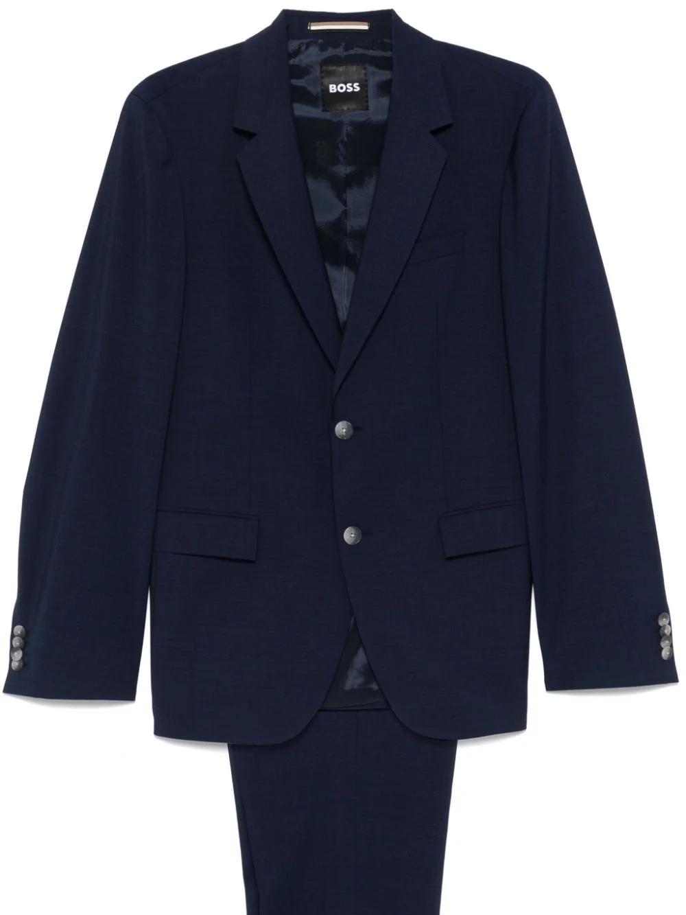 Houston suit Highlights - Navy blue - Front button fastening - Hook and zip fly fastening - Two front flap pockets - Two side slash pockets Imported Composition Outer: Virgin Wool 100% Lining: Viscose 64%, Polyester 36% SIZE & FIT Model measurements Height 6 ft 2 in(1.87 m) Bust/Chest 38.18 in(97 cm) Hips 36.61 in(93 cm) Waist 29.13 in(74 cm) FittingInformation Tailored for a slim fit, offering a comfortable fit that sits just away from the body The unfinished hems allow for the length to be altered Made from a midweight non-stretch fabric