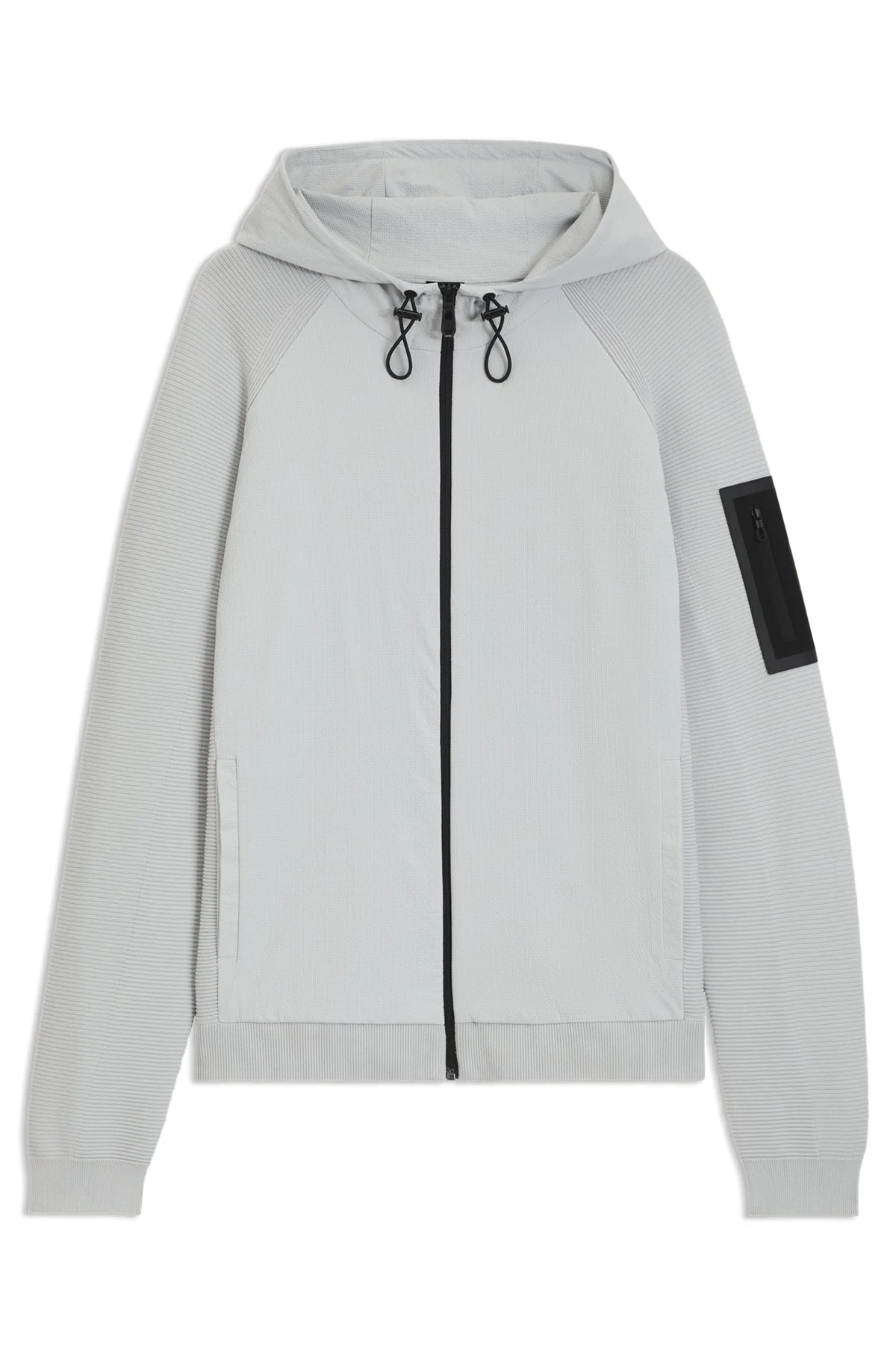 SIZE AND FIT The model wears a size M and is 6'2" tall with a, 38" chest, 31" waist and 38" hips. DETAILS K_Urban Commuter HY - 50541956 Combining seersucker with a comfort-stretch knit, this straight-fit BOSS Menswear jacket is easy to layer over everyday looks. Bodymapping details to match bottoms. Regular fit Pockets top: Side-entry pockets Ribbed cuffs Standard length QUALITY & CARE INSTRUCTIONS Reduced Dry Clean Quality: 61% Viscose, 24% Polyester, 13% Polyamid, 2% Elastane, Facing: 85% Polyamid, 15% Elastane, Hood: 85% Polyamid, 15% Elastane Machine Wash Cold Gentle Do Not Tumble Dry Do Not Bleach Iron Low Heat