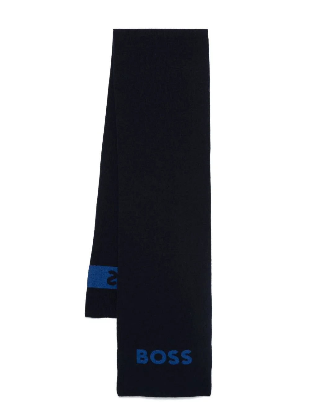 intarsia-logo scarf Highlights - Navy blue - Fine ribbed - Intarsia-knit logo - Wraparound style Made in Italy Composition Polyamide 35%, Viscose 30%, Recycled Wool 16%, Wool 14%, Cashmere 5% SIZE & FIT Measurement LENGTH 66.92 in(170 cm) WIDTH 10.23 in(26 cm)
