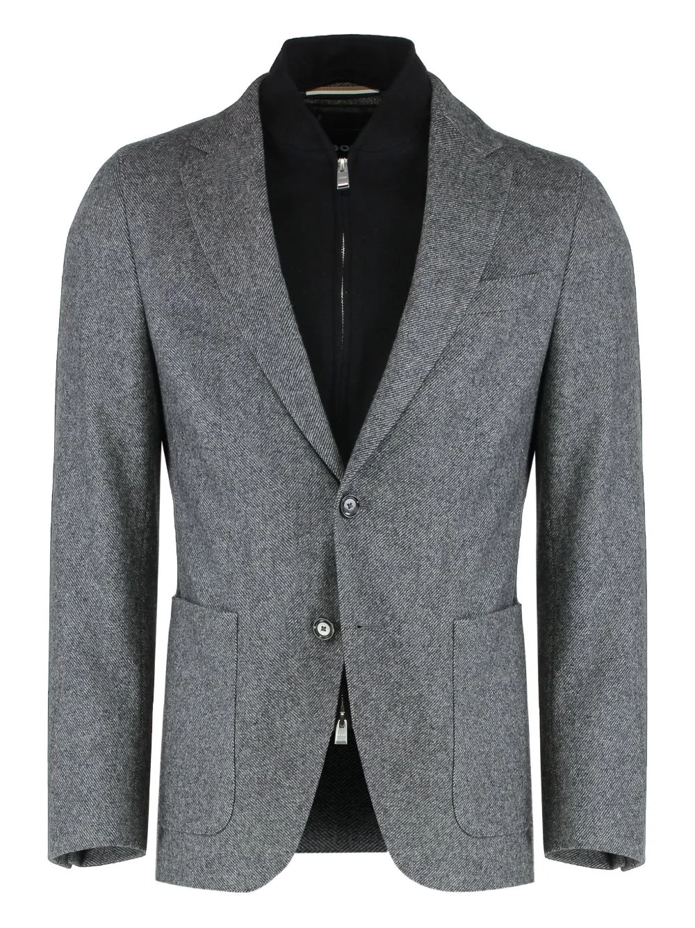 integrated-bib blazer Highlights - Grey - Integrated harness - Subtle pattern - Collar with lapels - Two pockets - Small pocket Imported Composition Wool 80%, Polyamide 20% Washing instructions Read Manufacturer Guidelines