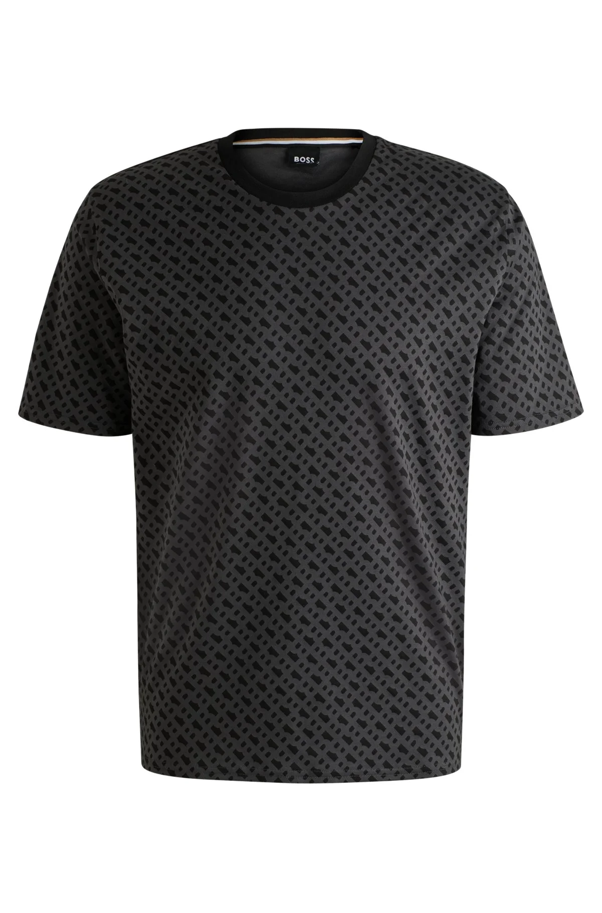 DETAILS Relax T-Shirt CN - 50535741 Featuring a Double B monogram print for contemporary style, this BOSS Menswear pajama T-shirt is a comfortable overnight option. Easy regular fit. Breathable cotton. Regular fit Neckline: Crew neck QUALITY & CARE INSTRUCTIONS Do Not Tumble Dry Quality: 100% Cotton Do Not Bleach Iron Medium Heat Machine Wash Cold Do Not Dry Clean