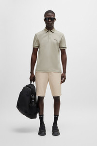 SIZE AND FIT The model wears a size M and is 6'0" tall with a, 31" chest, 26" waist and 35" hips. DETAILS Paule - 50519720 A premium polo shirt by BOSS Menswear. Featuring contrast tipping and a logo print, this slim-fit top is engineered in soft interlock cotton. Slim fit Neckline: Flat-knit collar Number of buttons: 3 Short sleeves Flat-knit cuffs Standard length QUALITY & CARE INSTRUCTIONS Do Not Bleach Do Not Tumble Dry Quality: 100% Cotton Do Not Dry Clean Iron Low Heat Machine Wash Cold Gentle