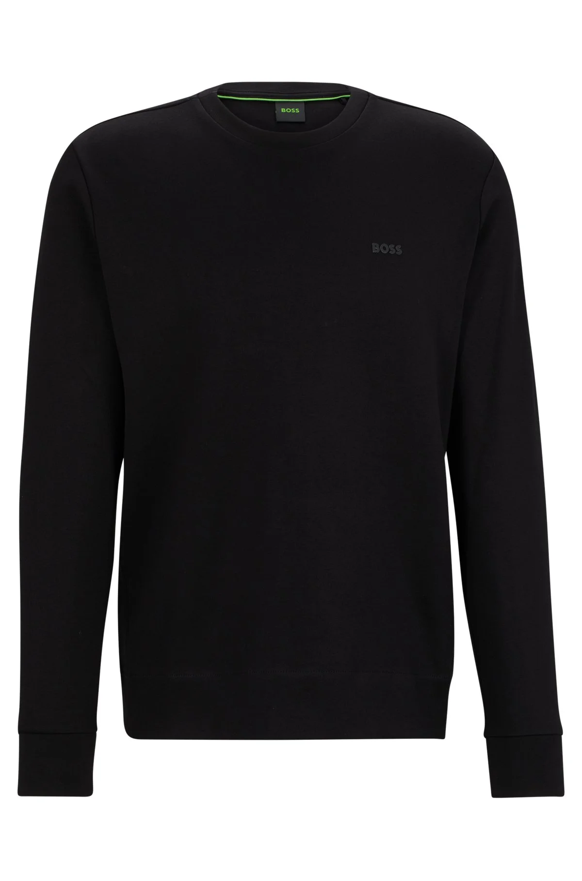 SIZE AND FIT The model wears a size L and is 6'2" tall with a, 38" chest, 29" waist and 38" hips. DETAILS Salbo X - 50493719 A signature sweatshirt in interlock cotton with a crew neckline and subtle logo detail by BOSS Menswear. Regular fit Long sleeves Standard length QUALITY & CARE INSTRUCTIONS Do Not Bleach Do Not Tumble Dry Quality: 100% Cotton Do Not Dry Clean Iron Low Heat Machine Wash Cold Gentle