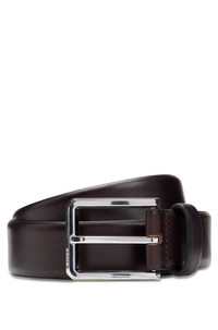 SIZE AND FIT The model wears a size 36 and is 6'2" tall with a, 36" chest, 28" waist and 37" hips. DETAILS Caleb_Sz35 - 50537174 A 3.5cm belt crafted in Italian leather by BOSS Menswear. This accessory has a logo-engraved gunmetal buckle with an architectural shape. For the best fit, we advise ordering a belt one size larger than your waist size. Engraved logo on closure Width: 3,5 cm (1.4 inches) Hardware finishing: Polished gunmetal hardware Fully lined QUALITY & CARE INSTRUCTIONS Quality: 100% Cow leather