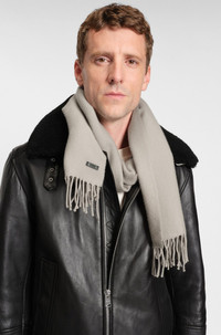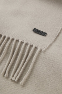 SIZE AND FIT The model wears a size pce. and is 6'0" tall with a, 37" chest, 29" waist and 36" hips. DETAILS Crafted in soft wool twill with fringed ends, this BOSS Menswear scarf is a cozy, cool-weather classic. Logo patch in synthetic coated fabric. Synthetic coated fabric, sometimes referred to as faux leather, is a fabric designed to resemble real leather, and/or display a matte, glossy, smooth, or textured, coated appearance. Measurements: 164 x 32cm Naster_35*180 - 50517218 QUALITY & CARE INSTRUCTIONS Hand Wash Only Material: 100% Wool Do Not Tumble Dry Iron Low Heat Do Not Bleach Dry Clean Only